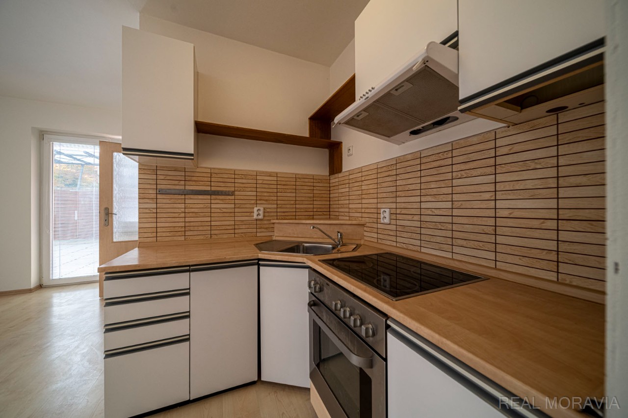 Prodej bytu 1+kk v osobním vlastnictví v lokalitě Kvítkovice, ul. Hlavní, Otrokovice. Podlahová plocha bytu činí 37,3m² + cca 24m² velká terasa (soukromá, přístupná pouze z předmětného bytu). Byt umístěn ve 2. NP (1. patro), vchodové dveře plastové, okna plastová s dvoj-skly, podlahy betonové kryté plovoucími podlahami (laminátové) a dlažba v koupelně. Vnitřní dispozice: vstupní chodba, pokoj s kuchyňským koutem a s výstupem na terasu, koupelna se sprchovým koutem, WC samostatné přístupné přes koupelnu. Vytápění bytu a ohřev teplé vody zajišťuje vlastní plynový kotel. K bytu náleží drátěná sklepní kóje umístěná na podlaží. Parkování zdarma na obecním parkovišti u domu. Měsíční platby 1869,- Kč/měsíc (vodné, stočné, správa domu, fond oprav, pojištění stavby atd.) + 1500,- Kč/měsíc zálohy na energie (plyn, elektřina). Výstavba provedena v r. 2008 - nadstavba nad stávající, původní objekt. Volné ihned. Klidná, tichá lokalita.