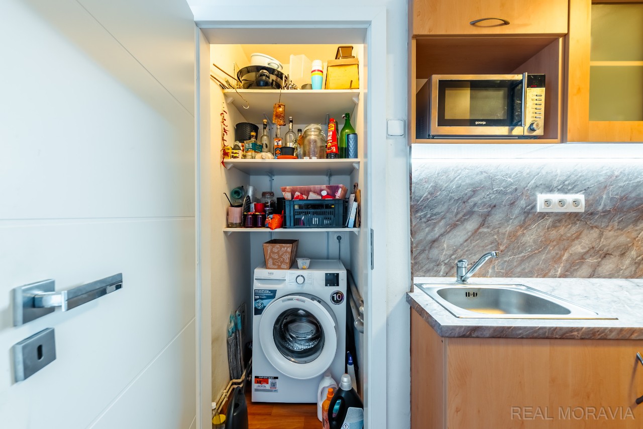 Nabízíme k pronájmu pěkný prostorný byt 2+1 v menším bytovém domě v Olomouci, ul. Za poštou, blízko nákupního centra Šantovka. Byt se nachází v 1.patře čtyřpodlažního domu bez výtahu, má výměru 55,1 m² a je po rekonstrukci v r. 2016 (vnitřní dveře, kuchyň, koupelna, podlahy, částečně elektroinstalace, částečně omítky). V domě je celkem 12 bytů, dům je po celkové revitalizaci (fasáda, zateplení, střecha, stupačky, okna, vstupní dveře, společné prostory). V bytě se nachází velká předsíň s oknem (věšáková stěna, botník), koupelna (vana se sprchovací zástěnou, umyvadlo, otopný žebřík), samostatné WC s oknem, prostorný obývací pokoj (sedačka, skříňky, stolek), kuchyň s jídelním koutem (vestavěné skříně, plyn. sporák s el. troubou, digestoř, lednice s mražákem, stůl a 4 židle), spíž (s pračkou), ložnice (vestavěná skříň, manželská postel, prac.stůl + židle). Na podlaze podlahové PVC (chodba, kuchyň), plovoucí podlaha (pokoje) a dlažba (koupelna a WC). Okna plastová, žaluzie, osvětlení ve všech pokojích. Vytápění a ohřev vody – samostatný plynový kotel, samostatné měřiče energií. K bytu patří společný balkon na chodbě a velký sklep 16 m². Přípojka na internet, pevná linka. Ve vnitrobloku za domem k dispozici dvůr se zahradou. Byt se pronajímá se částečně zařízený. Parkování na ulici před domem, nebo na parkovišti vedle domu. Orientace pokojů na jih (do ulice Za Poštou), kuchyň na sever (do vnitro bloku). V blízkosti MHD, obchodní centrum Šantovka. Volný od 1.5.2026. Měsíční nájemné 15 000 Kč + zálohy na energie a služby 3500 Kč. Majitel požaduje vratnou kauci ve výši 1 měs. nájmu vč. energií, provize RK ve výši 1měsíčního nájmu. Majitel preferuje zájemce bez domácích mazlíčků, nekuřáky, bez zatížení exekucí či insolvencí. Dlouhodobý pronájem. Kompletní informace o stavu nemovitosti obdržíte u makléře, veškeré uvedené údaje jsou pouze informativní. V případě více zájemců si majitel vybere, s kým uzavře rezervační smlouvu. PENB D.