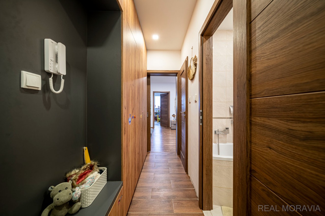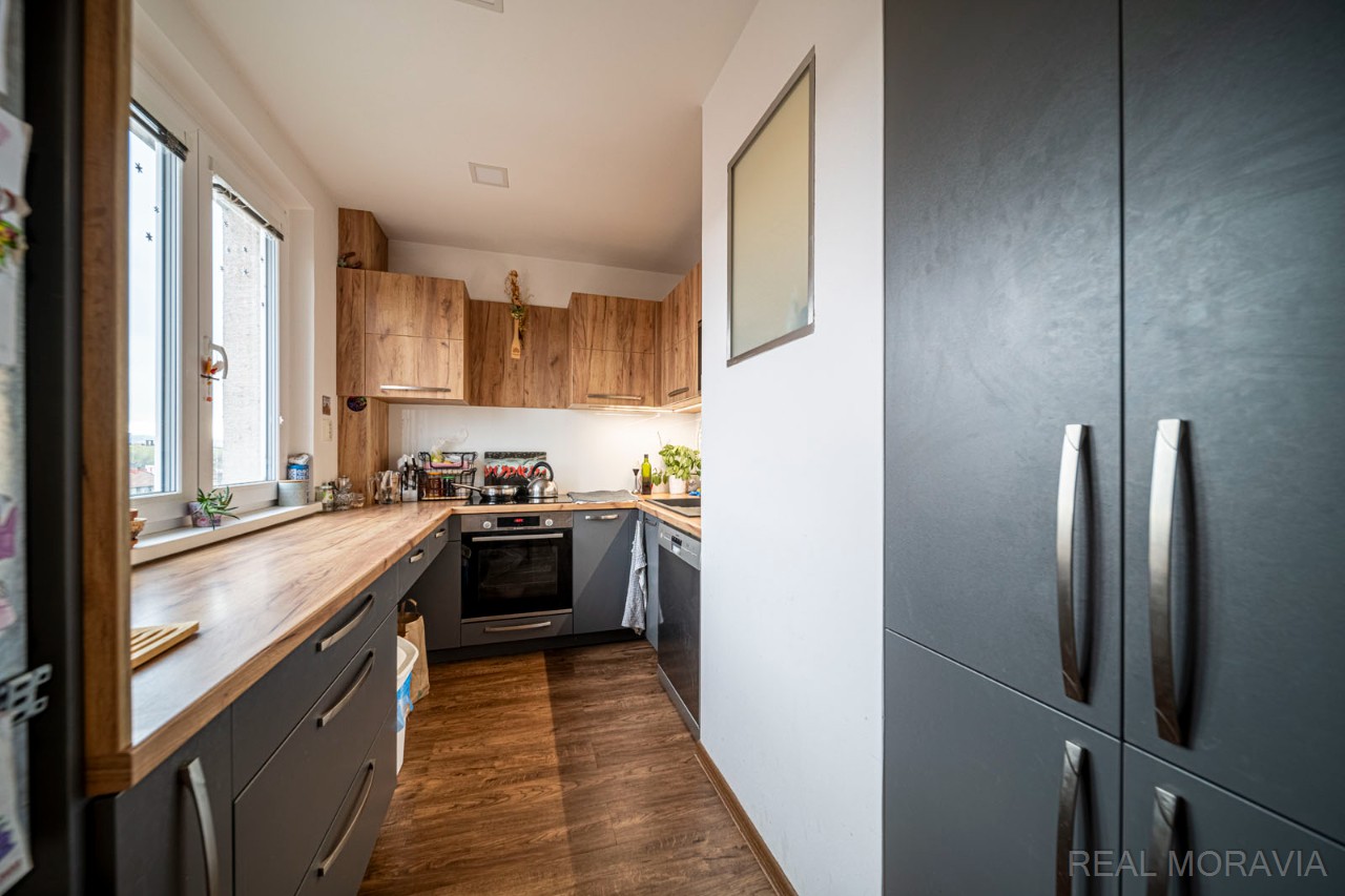 Prodej krásného bytu 3+1 v osobním vlastnictví, centrum města Uherské Hradiště, Tř. Maršála Malinovského. Podlahová plocha bytu 58,6m², byt umístěn v 8. NP z celkových 11. NP, výtah ano, panelový dům po revitalizaci - výtah, zateplení fasády, výměna střešních konstrukcí, plastové vstupní domovní dveře, plastová okna. Vnitřní dispozice bytu: vstupní chodba, koupelna s vanou, samostatné WC, obývací pokoj s balkonem, ložnice, dětský pokoj, kuchyně. Byt po kompletní rekonstrukci - bytové jádro, koupelna, kuchyně, podlahy, vestavěné skříně. K bytu náleží menší sklepní kóje. Parkování zdarma v ulici u domu. Veškerá občanská vybavenost v dosahu.