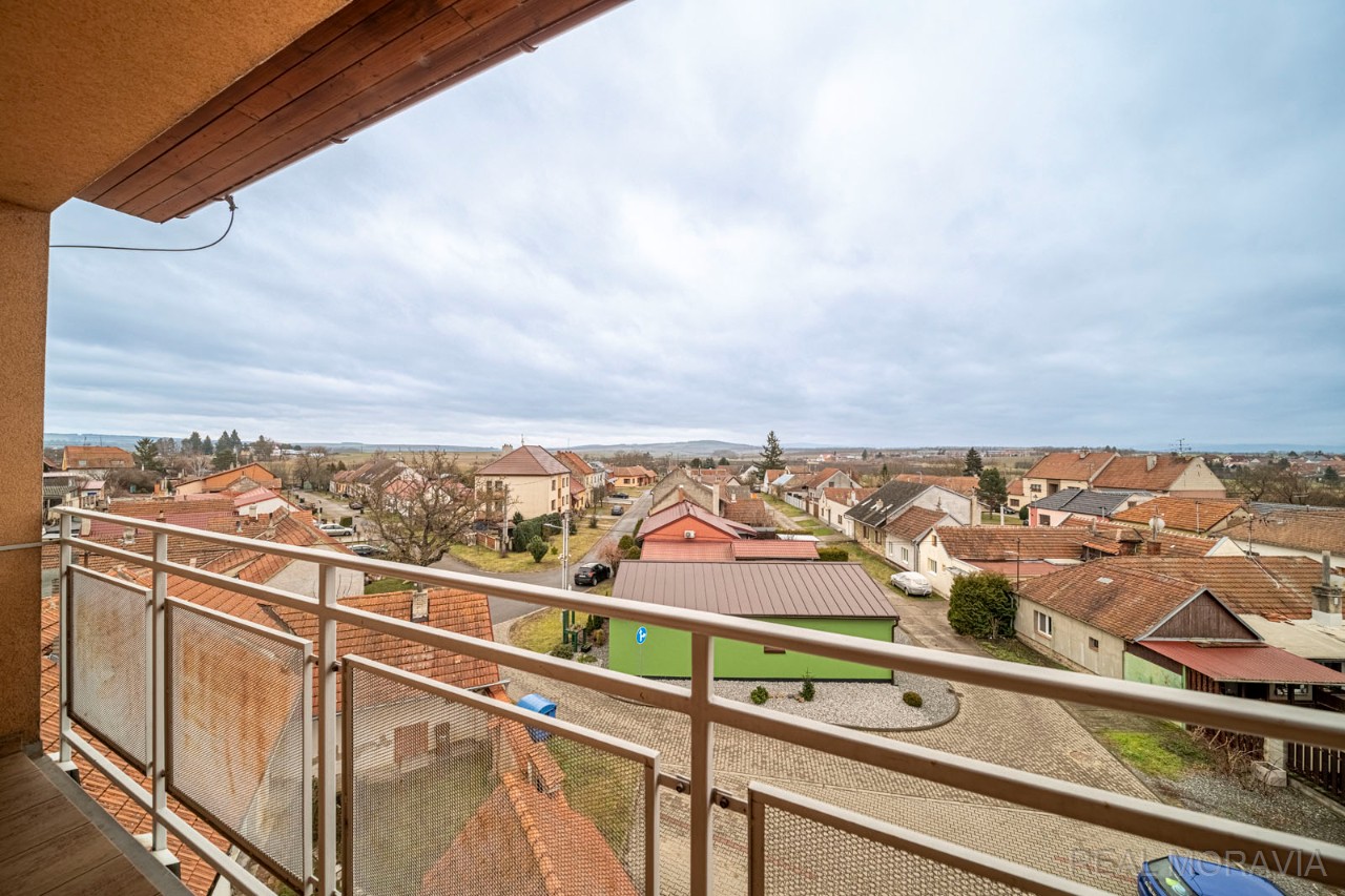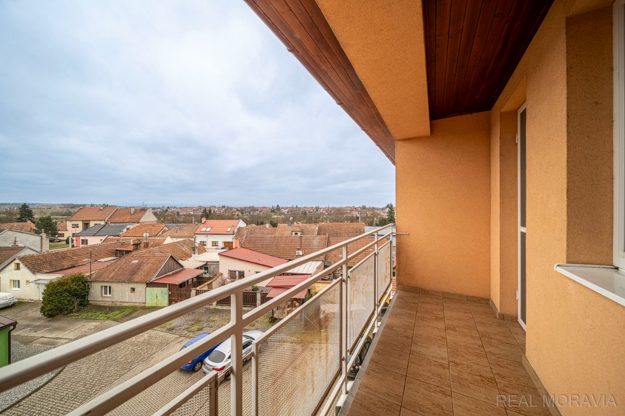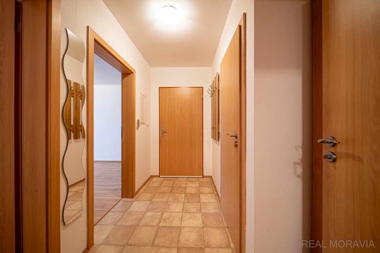 Prodej velmi pěkného bytu 3+kk v lokalitě Kvačice, město Uherský Ostroh. Podlahová plocha 69,82m², umístěn ve 3. NP bytového domu bez výtahu. Vnitřní dispozice: vstupní chodba, samostatné WC, koupelna s vanou, pokoj, obývací pokoj s kuchyňským koutem, ložnice s lodžií. Podlahy PVC linoleum, ohřev teplé vody el. bojler, vytápění lokální elektrické přímotopy, okna plastová 2-skla, v bytě instalována klimatizace, kuchyňská linka včetně vestavěných spotřebičů (myčka, indukční varná deska, el. trouba), fasáda bytového domu zateplená. V suterénu bytového domu je k bytu menší sklepní kóje. Měsíční náklady 2190,- Kč (fond oprav, vodné, stočné, společné prostory, úklid spol. prostor, pojištění) + zálohy na elektřinu 2400,- Kč/měsíc. Byt je situován do dvora, z lodžie je krásný výhled, klidná lokalita. U domu je možné parkování zdarma na obecním parkovišti. Volné ihned.