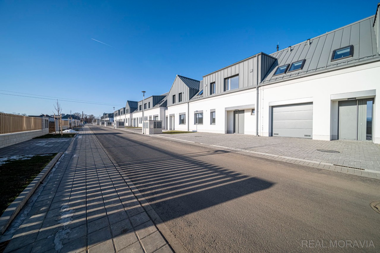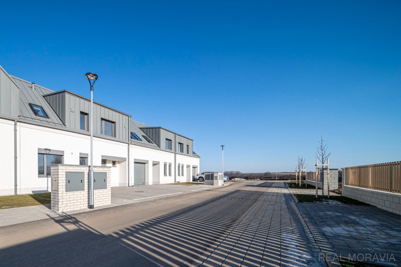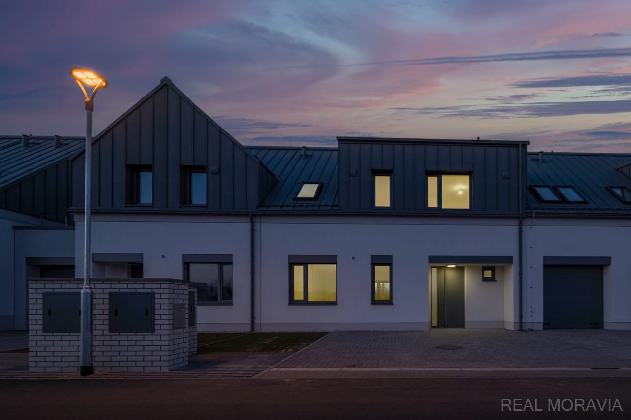 Prodej plně zkolaudované novostavby rodinného domu 5+kk, řadová zástavba, ulice Nová Písečnice, město Strážnice, parkování pro 2 os. automobily, vlastní oplocená zahrada, obývací pokoj s přímým výstupem do zahrady, v domě rekuperace, vytápění plynovým kondenzačním kotlem, na střeše vlastní FVE pro dohřev teplé vody, okna plastová 3-skla, zvuková izolace o 40% vyšší než stanovuje norma (certifikát), příjezd po nové asfaltové silnici, zahrada je přístupná i brankou ze zadní strany pozemku. Cena nezahrnuje : vnitřní podlahové krytiny, kuchyňskou linku, vnitřní dveře a obložky, stropní svítidla. Volné ihned.