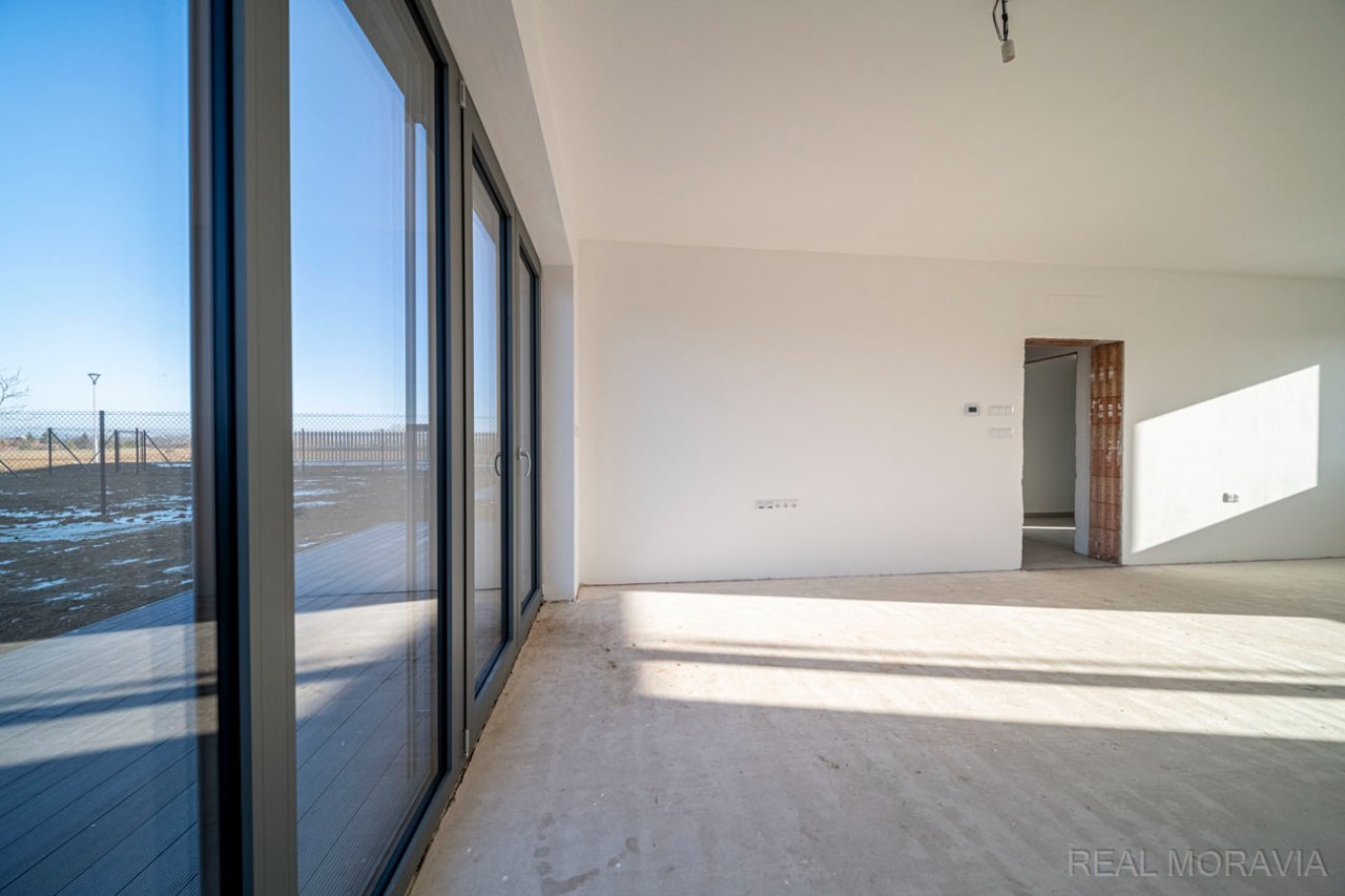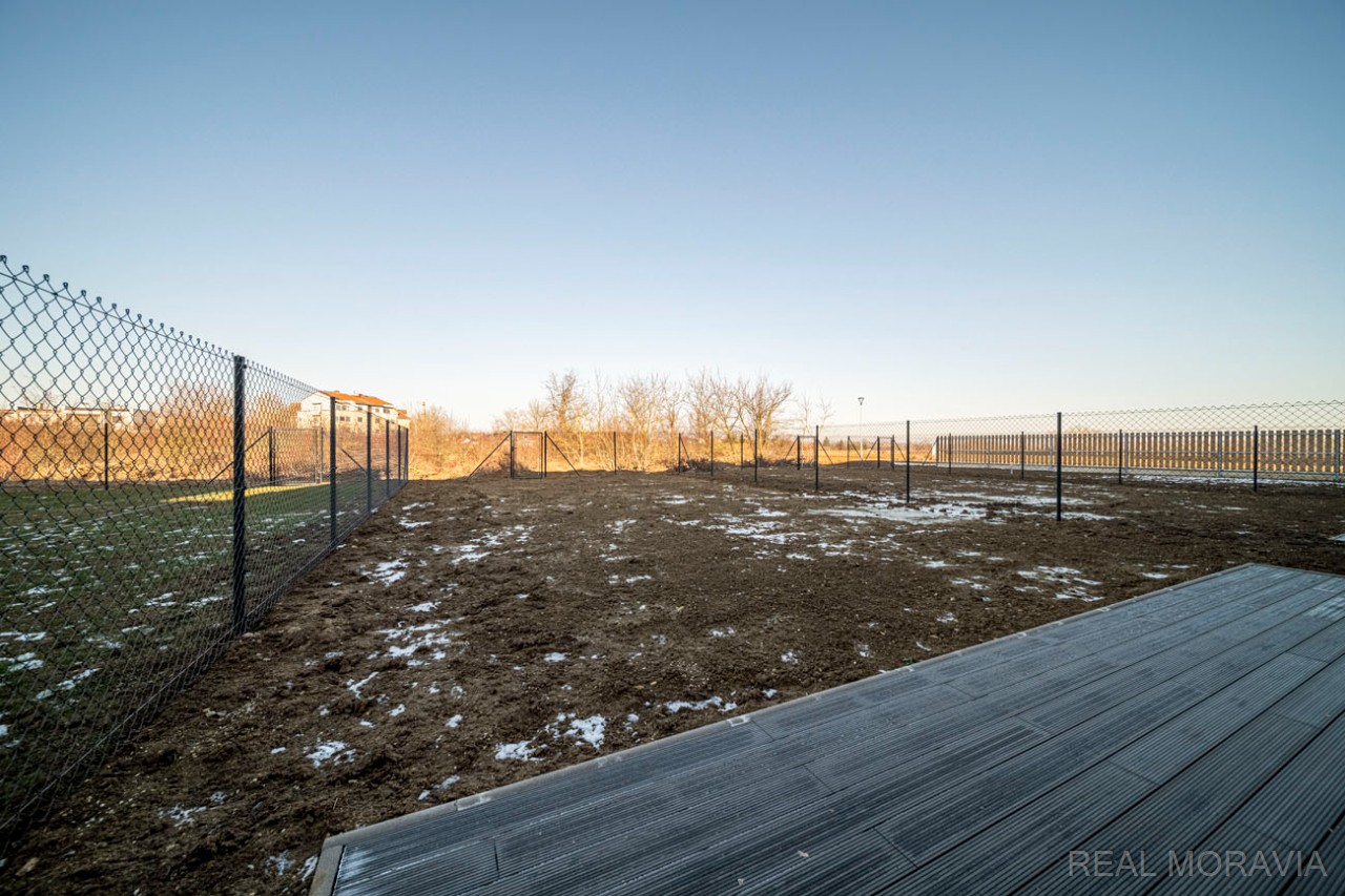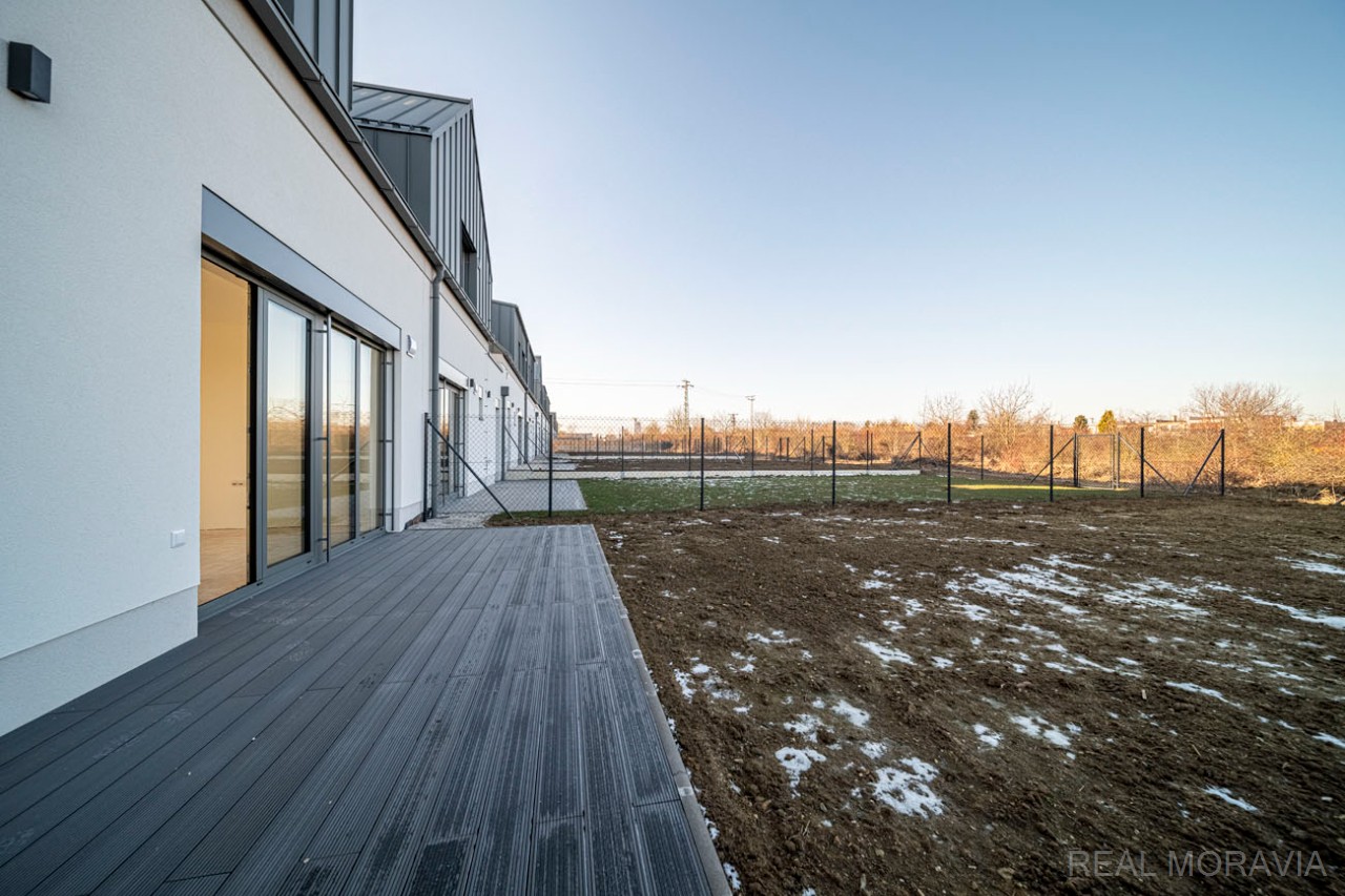 Prodej plně zkolaudované novostavby rodinného domu 5+kk, řadová zástavba, ulice Nová Písečnice, město Strážnice, parkování pro 2 os. automobily, vlastní oplocená zahrada, obývací pokoj s přímým výstupem do zahrady, v domě rekuperace, vytápění plynovým kondenzačním kotlem, na střeše vlastní FVE pro dohřev teplé vody, okna plastová 3-skla, zvuková izolace o 40% vyšší než stanovuje norma (certifikát), příjezd po nové asfaltové silnici, zahrada je přístupná i brankou ze zadní strany pozemku. Cena nezahrnuje : vnitřní podlahové krytiny, kuchyňskou linku, vnitřní dveře a obložky, stropní svítidla. Volné ihned.
